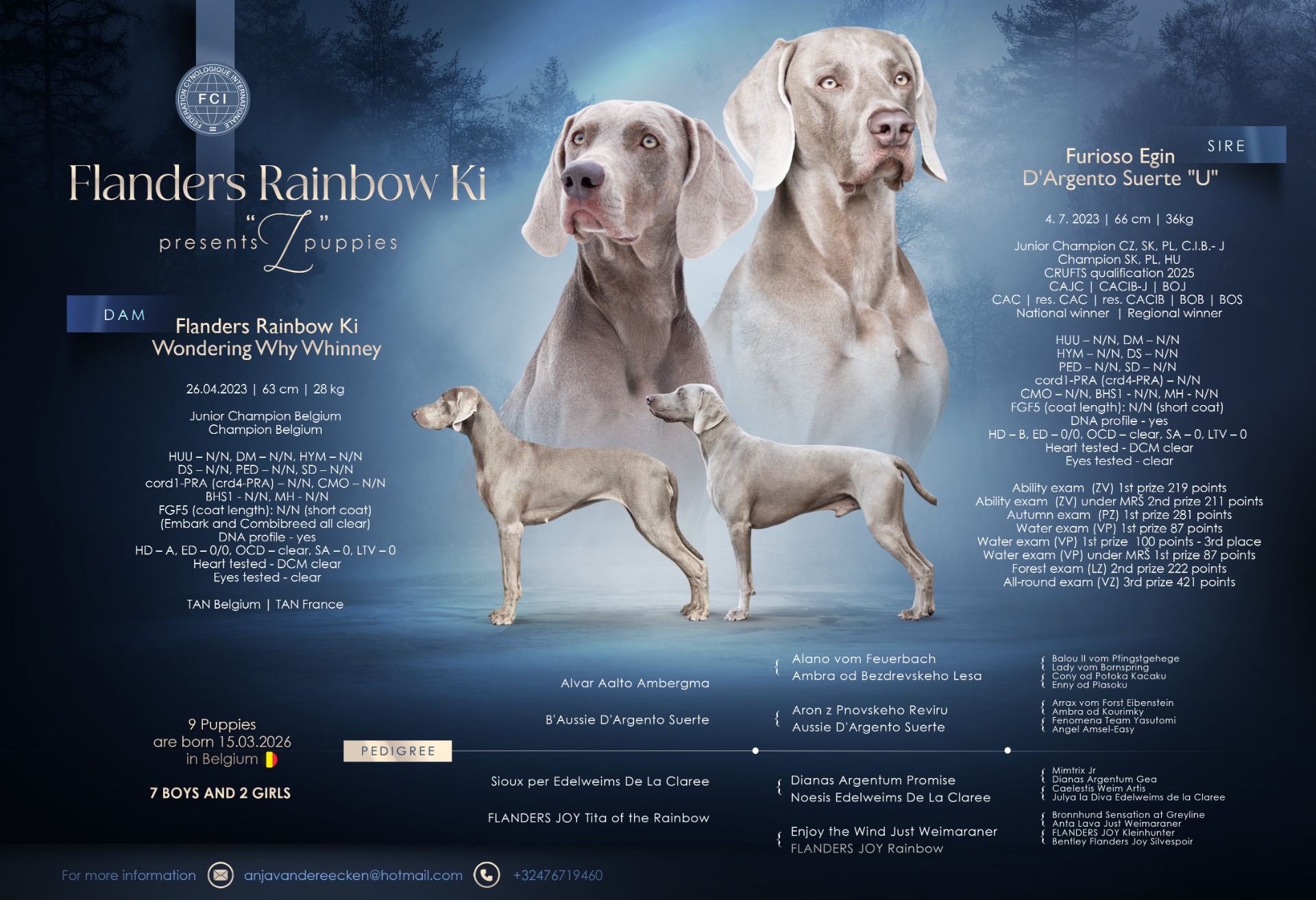 Více o vrhu najdete v sekci "potomci" nebo přímo zde - vrh "Z" Flanders Rainbow Ki.
